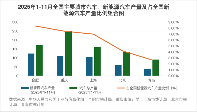 10月,2025年国际新能源汽车大会吸引超52万人次观展,销售额突破36亿元。合肥通过构建覆盖6家整车企业、近600家产业链企业的完整生态,2024年产量达137.6万辆,位居全国城市首位,在系统支撑层面,600亿元产业基金、领先的充电设施及“车路云一体化”试点协同发力,推动新能源汽车从制造高地迈向生活方式创新策源地。(来源:)