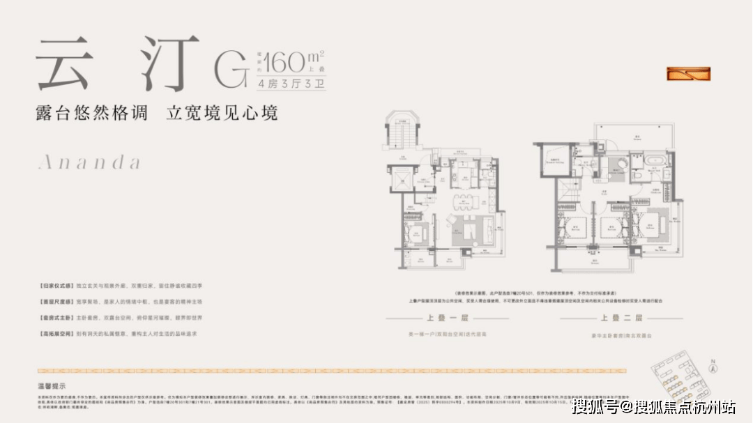 建面约160㎡上叠预计使用率最高约145%、约8.5m横厅双阳台双露台、南北通透主卧套房、阳光半坡顶楼。