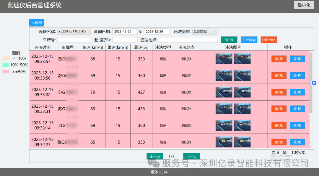 搭配500万/900万像素工业级高清相机,可清晰捕捉车辆牌照;抓拍捕获率超99.9%,支持1-4车道同时监测,测速范围覆盖5-400km/h,支持大小车分别测速,黑名单对比等优势。更值得一提的是,抓拍图片内嵌防伪水印,记录车速、时间、地点、设备编号等关键信息,从源头杜绝数据篡改,为执法取证提供铁证。