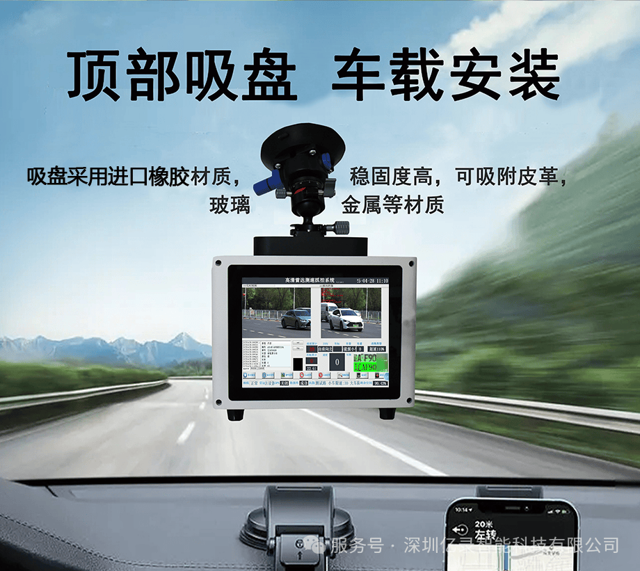 依托高吸力车载吸盘,设备可轻松吸附于车内挡风玻璃,实现车载移动测速,跟随执法车辆灵活巡查;搭配专业级三角支架,又能快速部署于路边、事故多发路段等区域,完成便携式测速;同时支持固定点安装,成为常态化管控的可靠据点。从动态巡查到静态值守,全场景无缝切换,大幅提升了执法覆盖面与管控效率。
