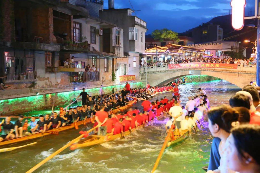 郑宝佑家族三代投身纺织业;陈建龙坚守“三代人只做一件事”的初心;这种长期主义的经营理念,使得企业能够跨越周期,持续发展。● 每年6月在长乐江田三溪举办的夜赛龙舟。图片来源:最美长乐